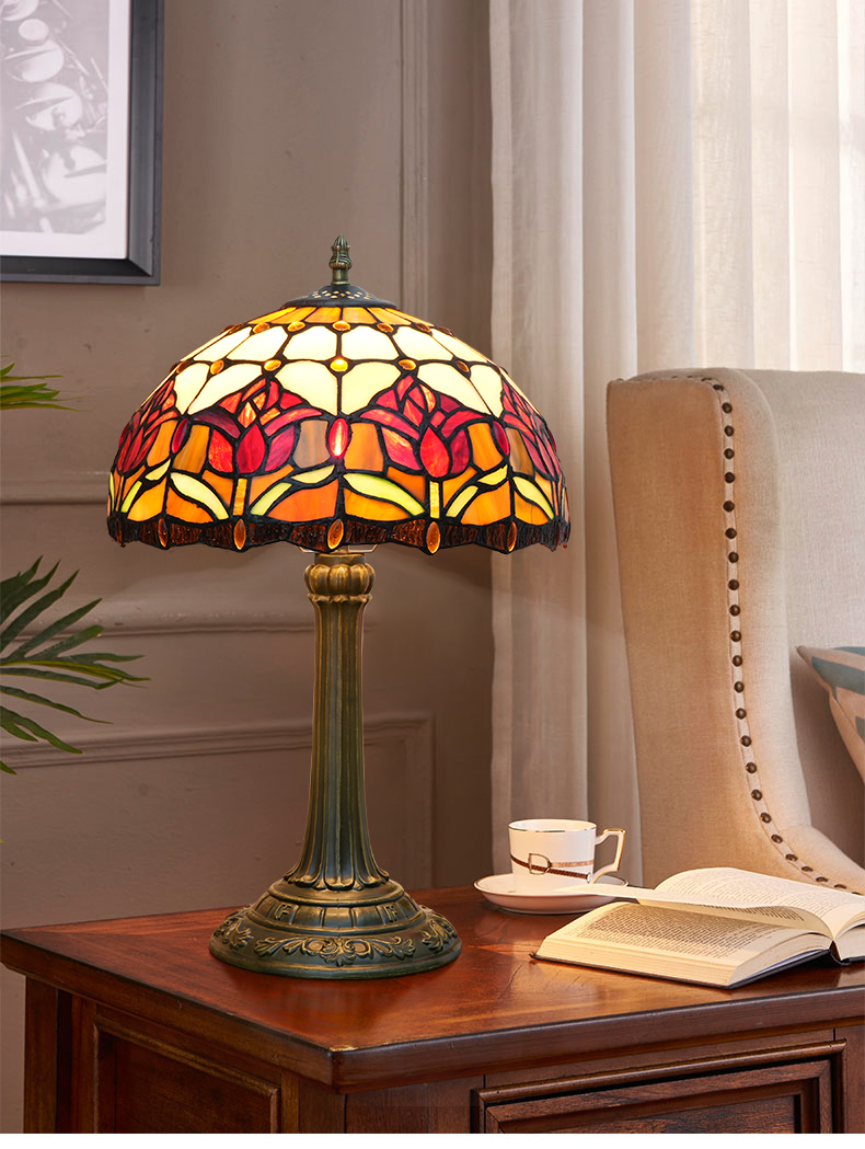 一、简介在室内装饰领域,照明灯具早已超越了单纯的提供照明的功能,成为塑造一个空间氛围、彰显主人品味的关键元素。当我们在追求将艺术美感与实用价值相结合的灯具时,蒂芙尼风格郁金香彩绘玻璃台灯无疑是极具吸引力的选择。它就像一件精心制作的艺术品,将色彩的绚丽、工艺的精致和照明的实用完美融合在一起,为家居空间带来独特的魅力和温暖的光芒。二、品牌和风格溯源蒂芙尼风格起源于19世纪末的美国,由路易斯Comfort Tiffany创立。路易斯·蒂芙尼不仅是一位杰出的设计师,也是新艺术运动的重要代表人物。新艺术运动强调自然形式的美学,反对工业时代的僵化和单调,主张从植物、花卉、昆虫等自然元素中汲取灵感,创造出富有曲线美感和生命力的艺术品。蒂芙尼风格的灯具就是这一艺术理念的典型体现。其核心工艺是彩色玻璃(彩色玻璃)的技术,包括将彩色玻璃切割成特定的形状,用铜箔包裹边缘,最后将它们焊接在一起,形成完整的图案。这种工艺使每一盏蒂芙尼风格的灯具都独一无二。彩色玻璃在光线的渗透下,可以营造出梦幻温馨的光影效果,使其成为当时上流社会家庭装饰的最爱。直到今天,它仍然在复古和艺术灯具领域占有重要地位。我们公司的这款台灯是对经典蒂芙尼风格的致敬和传承。以郁金香这种充满优雅和浪漫的花朵为核心图案,创造了一件既符合现代审美又富有历史和艺术底蕴的照明杰作。三、产品的核心组成和工艺分析(1)灯罩:彩色玻璃的艺术盛宴灯罩是这款台灯最具视觉冲击力的部分,采用优质的彩色玻璃材料制成。每一块玻璃都经过精心挑选,具有高色彩饱和度和良好的透光率。当灯光打开时,可以呈现出丰富而炫目的色彩效果。图案设计以郁金香为主题,作为荷兰的国花,郁金香象征着优雅、高贵和浪漫。设计师通过对郁金香的花瓣、茎叶等细节的精确描绘,生动地呈现出郁金香的柔和和活力。红色的花瓣热情奔放,仿佛诉说着生活的激情。黄色的花蕊鲜艳而温暖,给人如阳光般的希望。绿色的叶子清新而充满活力,为整个图案增添了自然的触感。玻璃的切割手法极其精湛。每一块玻璃都按照郁金香图案的轮廓精准切割,切边光滑平整,保证了后续铜箔包裹和焊接的严密性,切割完成后,每一块玻璃的边缘都会精心包裹铜箔,铜箔不仅起到连接玻璃的作用,自身的金属光泽也为灯罩增添了一抹精致,最后通过熟练的焊接工艺,将所有包裹铜箔的玻璃片连接在一起,形成一个完整的半球形灯罩。整个过程需要极高的工艺水平;任何一个细微的失误都可能影响灯罩的整体美观性和结构稳定性。当光线通过这样的灯罩射出时,彩色玻璃对光线进行过滤和折射,在周围的墙壁和家具上投下了暴动的光影,营造出梦幻般的氛围,让整个空间充满了艺术的气息。无论是在舒适的卧室还是时尚的客厅,这样的光影效果都能瞬间提升空间的质感。(2)灯柱和底座:具有金属质感的稳定支撑。灯柱和底座由铝合金制成。铝合金具有重量轻、强度高和耐腐蚀的优点。既保证了台灯的整体稳定性,又方便了移动和放置。灯柱的设计不是简单的圆柱形而是经过了细致的塑形处理。表面采用复古老化工艺,呈现出日积月累的金属质感,与蒂芙尼风格的复古魅力相得益彰。灯柱也是装饰有精美的雕刻图案,其特点是线条流畅,细节丰富。这些图案可能是一些简单的植物设计,进一步呼应了新艺术运动的自然主义设计理念,为台灯增添了一丝优雅和精致。底座也经过精心设计。宽大稳定的底座确保了台灯在使用过程中不会轻易翻倒,提供了强有力的安全保障。底座表面还装饰有雕刻,与灯柱的图案相呼应,形成了一个和谐统一的整体。从底部看,突出了这款台灯的工艺品质和艺术风格。(3)电气系统:安全和方便的保证。台灯的电气系统包括电线和开关等部件。电线长度为145cm。足够长的电线使台灯放置时更加灵活,不用担心电源插座靠得太近。电线采用优质绝缘材料包裹,绝缘性能优异,能有效防止漏电等安全隐患,保证了用户的使用安全。开关设计在电线中间,采用了方便的按钮式开关,简单易操作,用户无需弯腰或拉伤即可轻松控制台灯的开关,给日常使用带来极大的便利。4、产品尺寸和空间兼容性这款台灯的尺寸经过精心设计,具有良好的空间适应性。灯罩的直径为30CM(12英寸),整体高度为48CM(19英寸),底座直径为16.6CM(6.5英寸)。在尺寸方面,它既不会因为过于小巧而显得单薄,也不会失去应有的装饰效果。它不会因为尺寸过大而占用太多空间,也不会造成视觉上的压迫感。这样的尺寸使它非常适合放置在各种场景中。卧室:放置在床头柜上,晚上打开时,透过彩色玻璃过滤的柔和光线可以营造出温馨浪漫的睡眠氛围,帮助人们身心放松,陷入甜蜜的梦境。同时,其精致的外观也能为卧室增添一份艺术气息,成为卧室装饰的一大亮点。客厅:可放置在沙发旁边的边桌上,作为客厅的辅助照明。当家庭成员围在一起聊天、阅读或观看电影电视节目时,它能提供局部柔和的光线,避免了所有主灯都亮着带来的刺眼亮度,使客厅的气氛更加舒适宜人。而且,其独特的蒂芙尼风格和郁金香图案能与客厅的其他装饰元素相得益彰,提升了整个客厅的艺术品味。书房:将这款台灯放在书房书桌的一角。它不仅提供了充足的照明以满足阅读和写作的需求,其艺术的外观也
