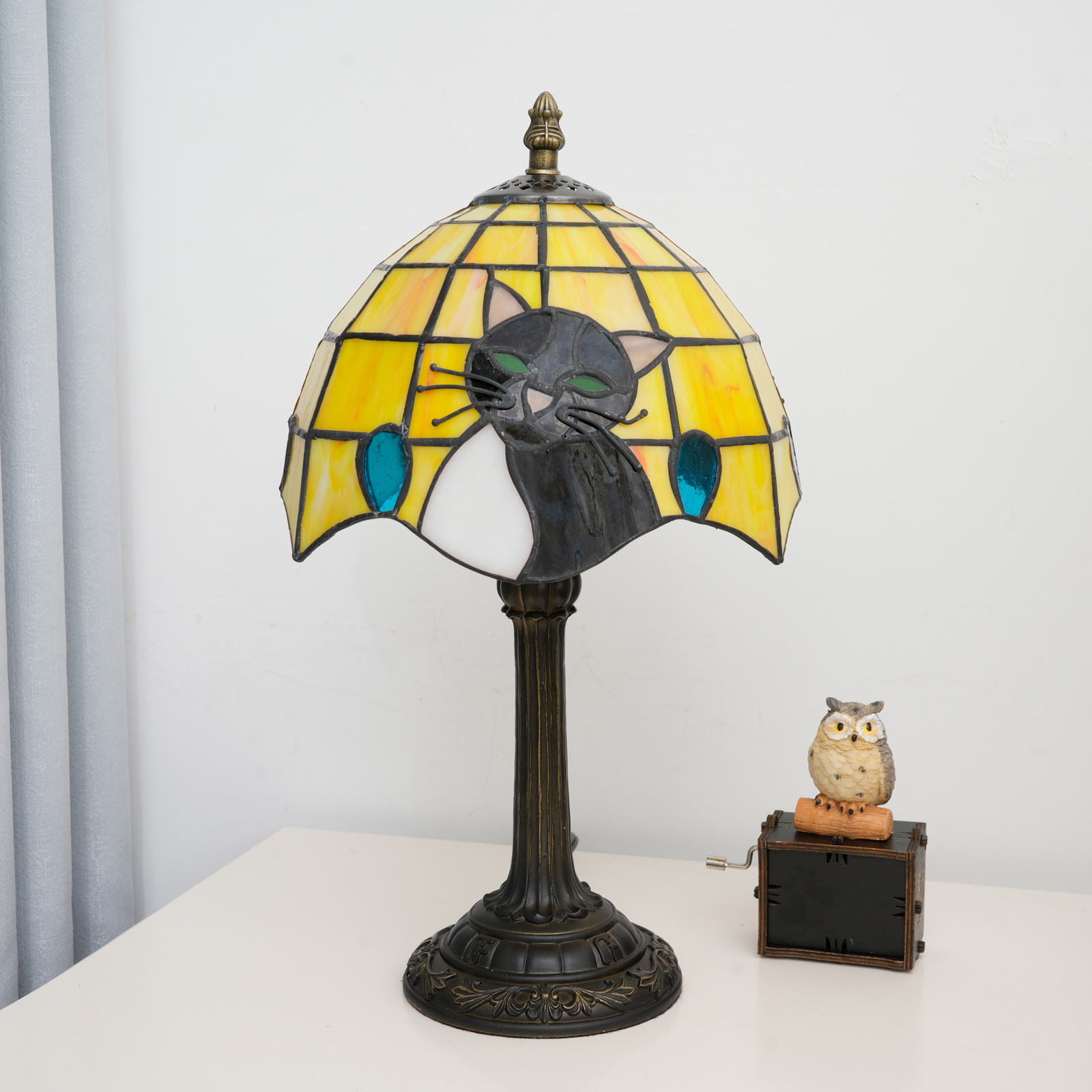 蒂芙尼风格黑白小猫彩色玻璃灯:穿越百年工艺之美,让萌猫为您点亮每一处生活<OFU1260>
