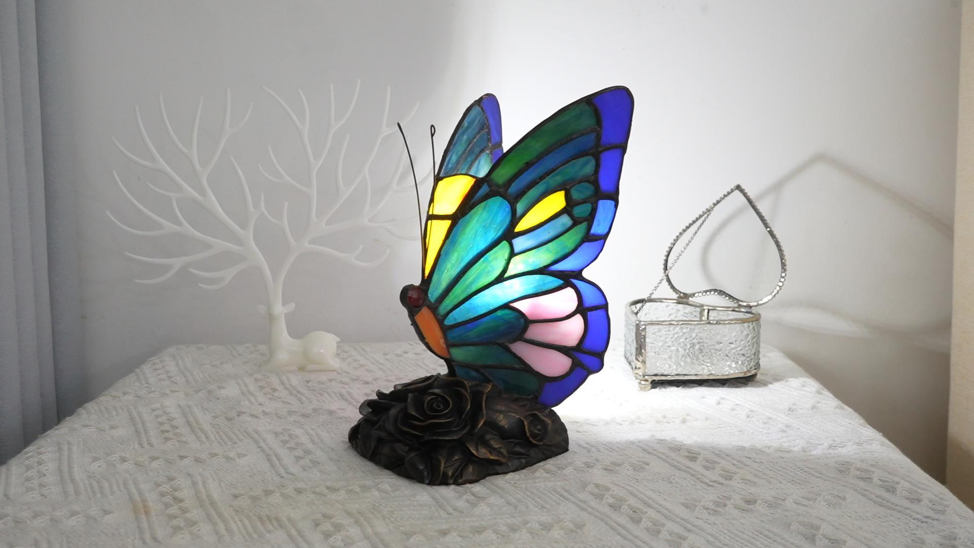 彩色玻璃蝴蝶形小夜灯,温馨卧室床头灯,浪漫艺术装饰